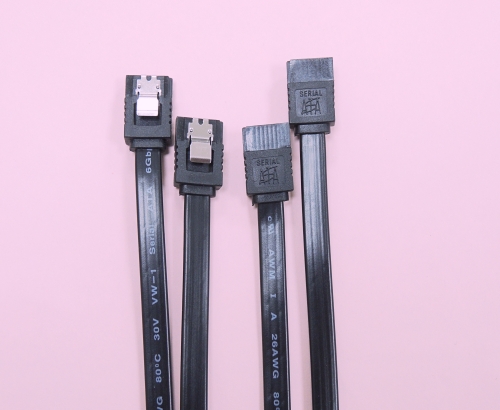 Product Specifications Sata cable Assembly 7Pin Connector: Standard 7Pin straight (180°) and right-angle (90°) Latching Cable: (26AWG*1P+A)*2 Connector: Molded 90°/180°